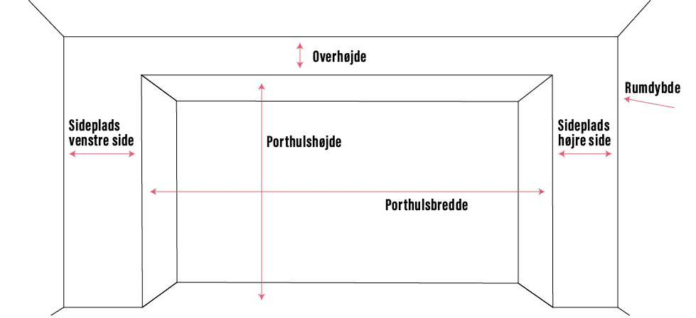 Husk at oplyse evt. placering af bjælker, rør eller andet på tværs af garagen. Ved porthullet skal bagmur og gulv være plant for at porten kan slutte tæt.